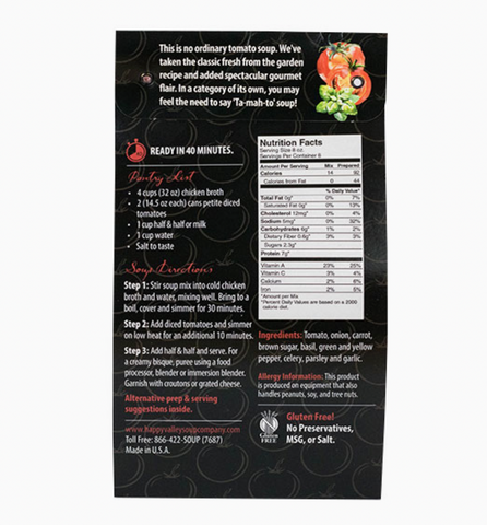 This is no ordinary tomato soup. We’ve taken the classic fresh from the garden recipe and added spectacular gourmet flair. In a category of its own, you may feel the need to say ‘Ta-mah-to’ soup!
