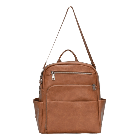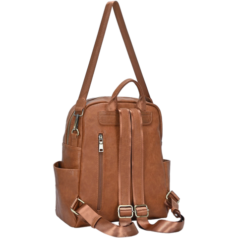 Pockets, pockets, pockets! This soft vegan leather mid sized backpack is a perfect day to day partner. Use the detachable shoulder strap for easier convenience to your belongings.